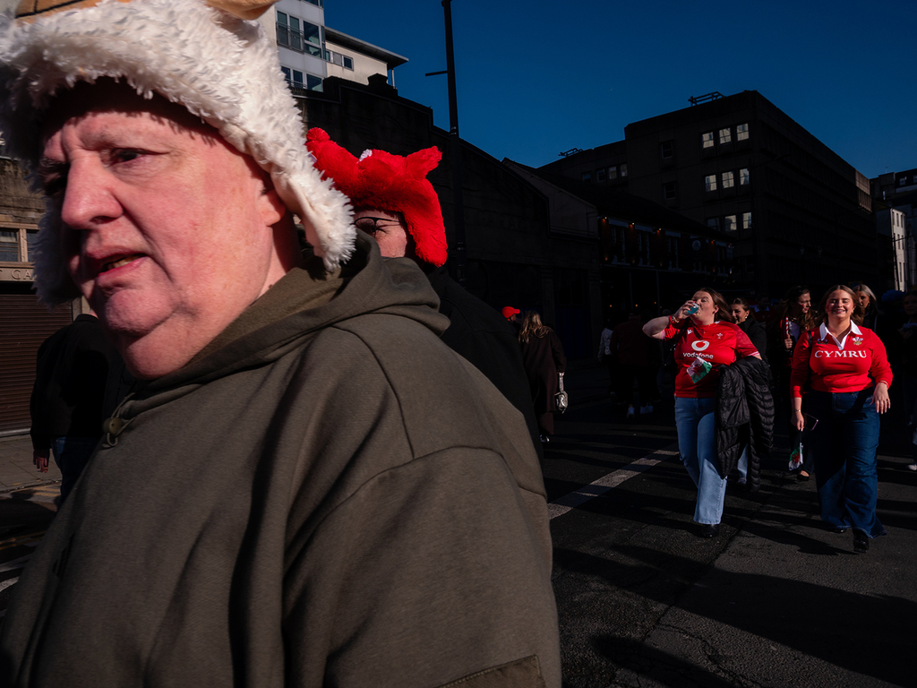 I went to Cardiff to photograph the pre-match activities as Wales hosted Ireland in the Six Nations. I parked in the street where I lived as a boy and started to walk into town, past the church where my parents married in 1954. The sounds that emanated from inside aroused my curiosity and I pushed an open door to see what was happening. It was a church meeting, but not one my parents would have recognised. I was welcomed by Pastor Mike who gave me permission to photograph their service. The RCN website explains they are “an interdenominational and non-denominational international Ministry to the body of Christ with the mandate of restoring the apostolic order and Christianity as was seen in the days of the first generation of apostles of Jesus Christ, and thereby heralding the coming of the Lord Jesus Christ in this end of the age.” It was a brief, unexpected and fascinating opportunity to document people during their devotions; my thanks to Pastor Mike and all those featured. Light levels resulted in ISO ranging from 10,000-25,000 so image quality has suffered and noise reduction software has left a few artefacts…but a picture is more than a technical exercise!